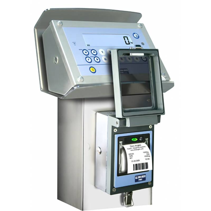 Stampante termica in acciaio INOX IP65, con sportello in ABS. Per montaggio sulla colonna del transpallet.