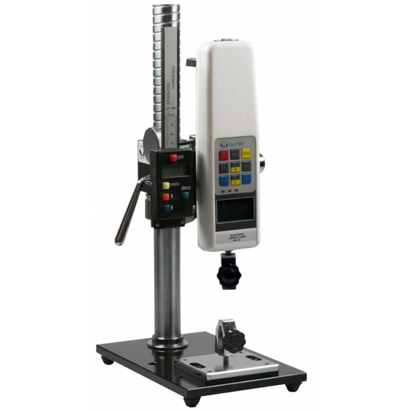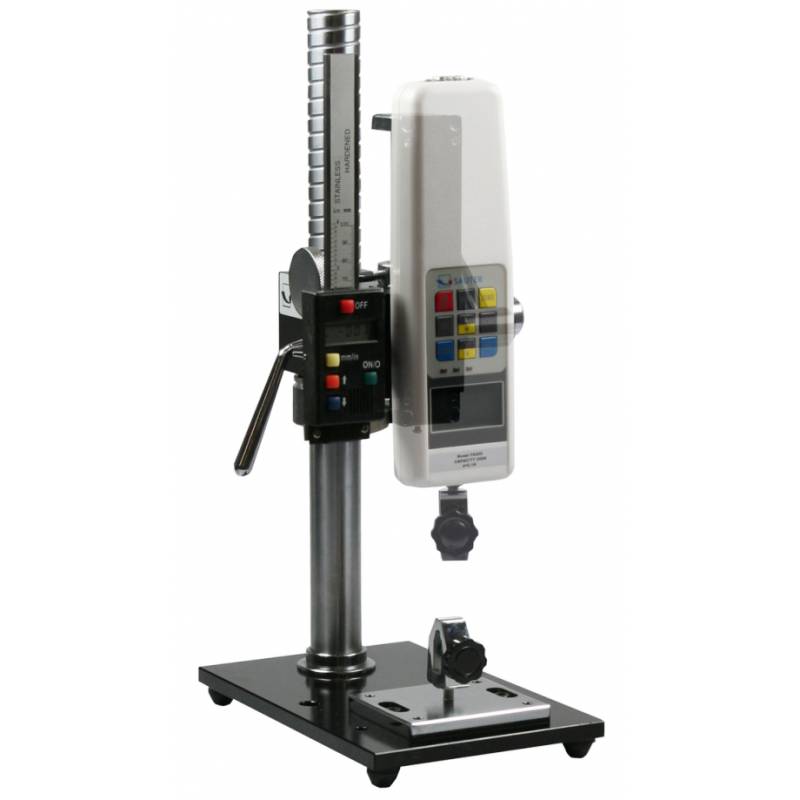Banco di prova per forza e distanze SAUTER TVP-L Stativo a colonna manuale per prove verticali con riga digitale di alta precisione con risoluzione 0.01 mm. Compatibile con tutti i dinamometri della gamma SAUTER. Campo di misurazione fino a 500 Newton, garantisce risultati più accurati rispetto ai test senza banco di prova.