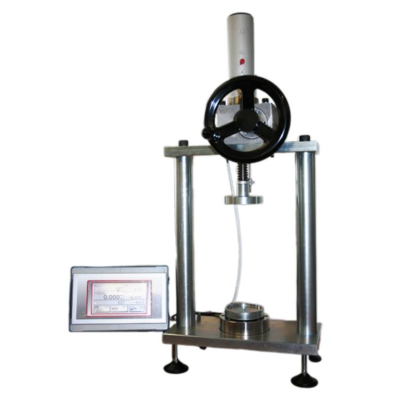 Stativo dinamometrico per verificare la forza e lo spostamento di molle a compressione che utilizza una cella di carico di portata variabile .Può essere utilizzato per calcolare la costante elastica delle molle. Questo strumento è disponibile con opzioni di misura della forza che vanno da 10 a 5000 N. Utilizzato per collaudare, misurare la forza e lo spostamento di molle a compressione.