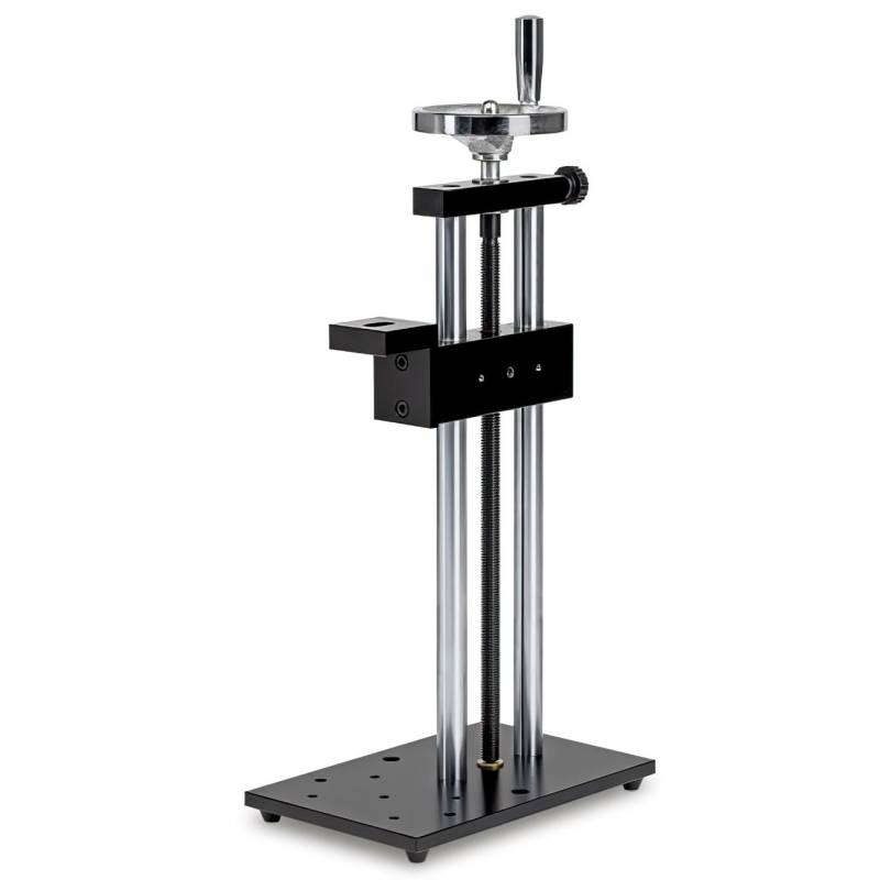 Stativo Manuale Sauter TVL-E adatto per dinamometri fino a max 2.000 Newton con cella di misura esterna. Corsa massima più ampia : 290 mm, passo per giro : 2 mm. Piastra di base dotata di foro per fissaggio morsetti con filettatura M12. Lavora in trazione ed in compressione, posizionato sia in verticale che in orizzontale, con elevata precisione.