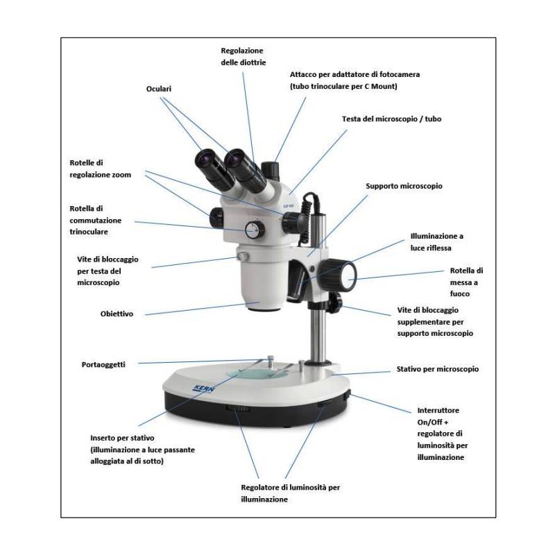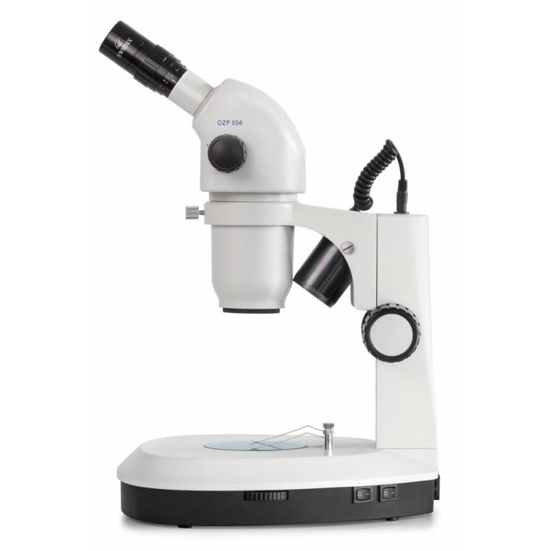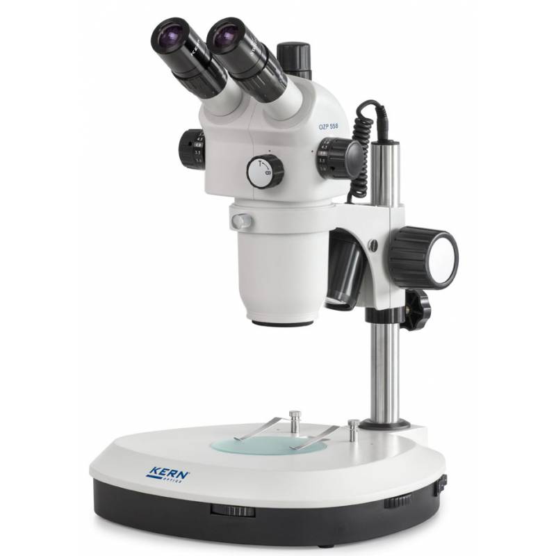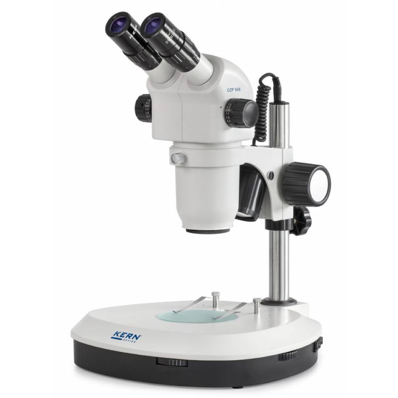 Stereomicroscopio professionale Led KERN OZP-5, in versione binoculare o trinoculare. Testa girevole a 360°, illuminazione a LED, 3 anni di garanzia. Ampia gamma di oculari, obiettivi e telecamere abbinabili in opzione. Ingrandimento regolabile da 6 a 55 volte. Per laboratorio, controllo qualità, industria elettronica, medicina, ricerca, alta formazione, zoologia, botanica.