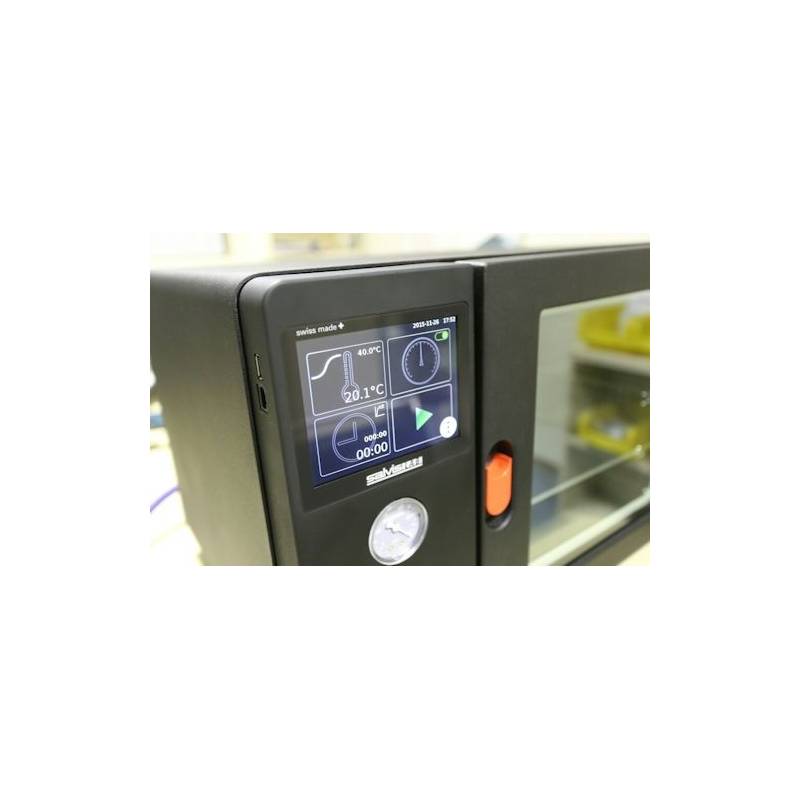 Stufa da vuoto SalvisLab VC50. Campo di lavoro: massimo 200°C. Volume utile 50Lt. Display TOUCH SCREEN capacitivo di ampie dimensioni 5.7” intuitivo e di facile utilizzo, risoluzione 640x480 pixels. Avanzato sistema di controllo digitale a microprocessore tipo PID., con scelta di cinque lingue: italiano compreso.