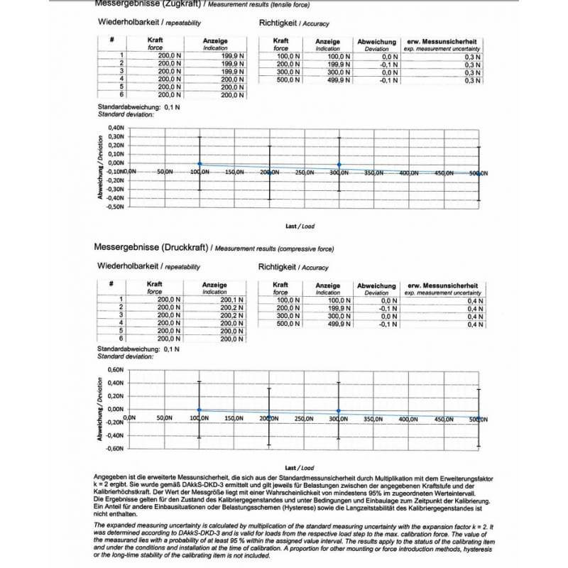 Certificato di taratura ISO per COMPRESSIONE su dinamometri fino a 500 newton
