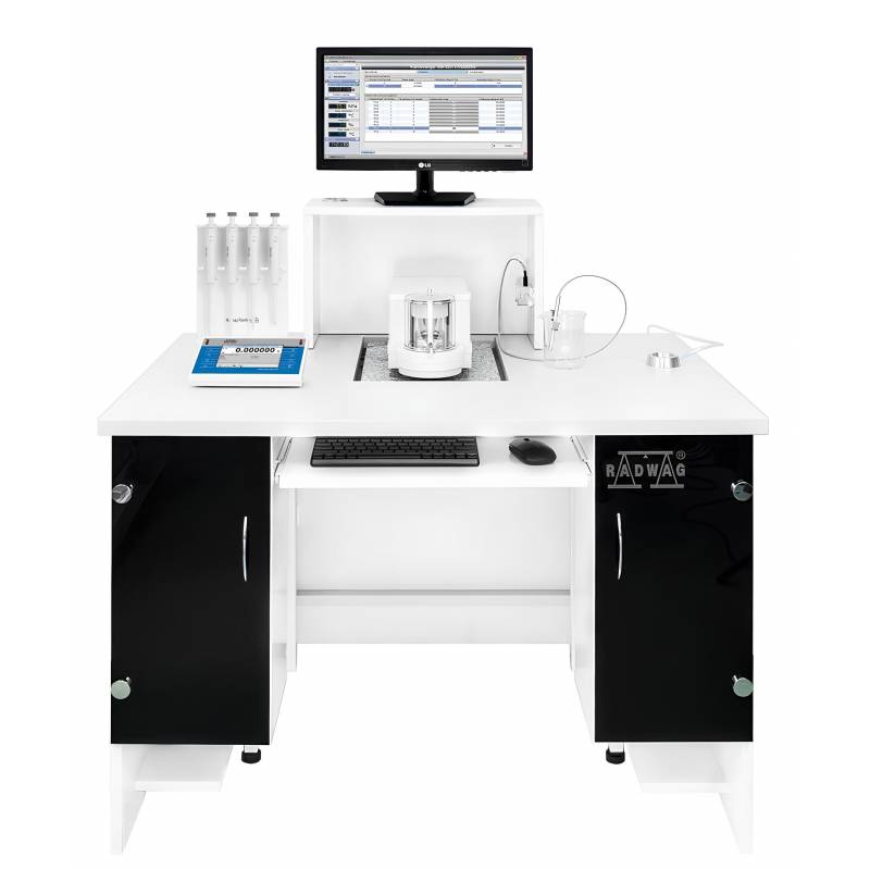 Radwag ha sviluppato questa postazione ponendo particolare attenzione all’ergonomia e alla praticità: il piano di lavoro include cassetti laterali, un ripiano estraibile per PC e periferiche, uno spazio riservato all’UPS e un supporto integrato per monitor. Ogni dettaglio è studiato per favorire l’efficienza nelle attività di laboratorio, anche in ambienti intensivi.