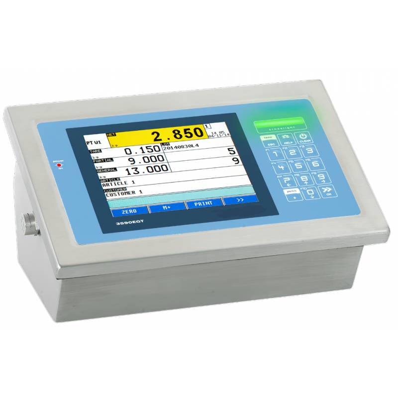 Indicatore di peso digitale con grande display touch screen, indicato per applicazioni industriali evolute. Permette la visualizzazione di tutti i dati legati alla pesata e la personalizzazione delle schermate, semplificando notevolmente le operazioni dell'utente. Dotato di 3 porte seriali, protocolli di trasmissione per comunicazione dati, stampe completamente configurabili, alibi memory integrata e ingresso per lettore di barcode/badge. Omologabile CE-M (OIML R-76 / EN 45501).