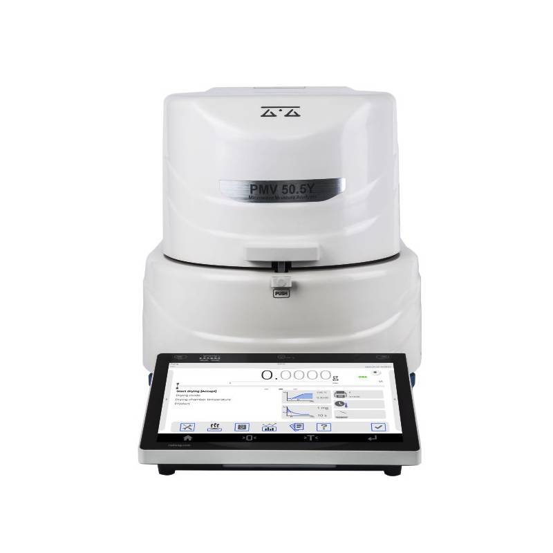 L' analizzatore di umidità Radwag PMV 50.5Y si basa su un sistema avanzato con una memoria espansa da 16 GB che consente di salvare e archiviare report sofisticati e grafici temporali e statistici. La comunicazione wireless migliora l'ergonomia e la sicurezza operativa. Il Wi-Fi integrato consente l'invio di dati tra l'analizzatore di umidità e un dispositivo mobile. L'ampio touch screen da 10'' garantisce comfort di utilizzo. I sensori di prossimità garantiscono l'accesso senza contatto alle operazioni specificate dall'utente. Può essere utilizzato con successo ovunque vengano essiccati materiali contenenti grandi quantità di acqua. Questi materiali sono, ad esempio, latticini, pesce, carne, prodotti a base di frutta, sciroppi, creme o resina liquida.