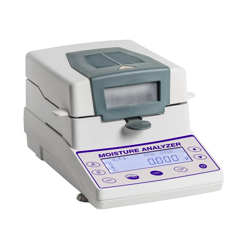 Analizzatore di umidità BM 113 è una bilancia termica dotata di una potente lampada alogena da 400 W ed è l'unica tra le termobilance ad essere fornita di serie di: certificato di taratura riferibile ACCREDIA , peso campione per controllo e calibrazione successive, 50 piattini in alluminio. Uscita seriale e protocollo GLP permettono il trasferimento delle analisi a PC o Stampante. Memoria interna.