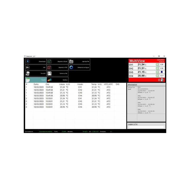 Software gratuito DataLink: Per semplificare l'organizzazione e l'analisi dei dati, mettiamo a disposizione il software gratuito DataLink+. Questo software consente di esportare i dati in formati come PDF ed Excel (XLS), offrendo una maggiore flessibilità nella gestione delle informazioni registrate. Inoltre, sfruttando la memoria del computer, puoi archiviare un numero infinito di dati e visualizzarli comodamente attraverso il software.
