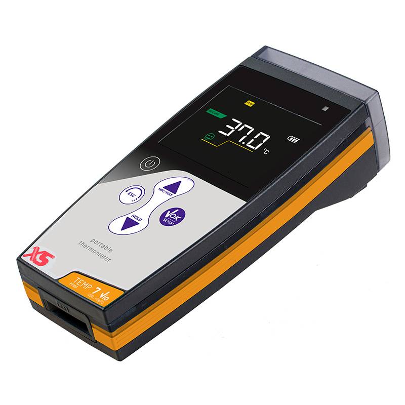 Termometro digitale portatile per sonde PT 100 mod. XS TEMP 7 Vio. Termometro professionale per misurazioni accurate e precise in un ampio intervallo di misure, Range -200 ... +999 °C. Consigliato per applicazioni in laboratorio o dove si necessiti di alta precisione. Completo di valigetta di trasporto. Certificabile Accredia.