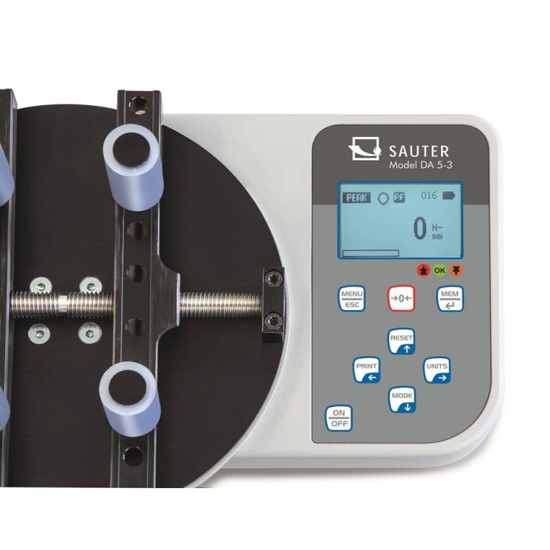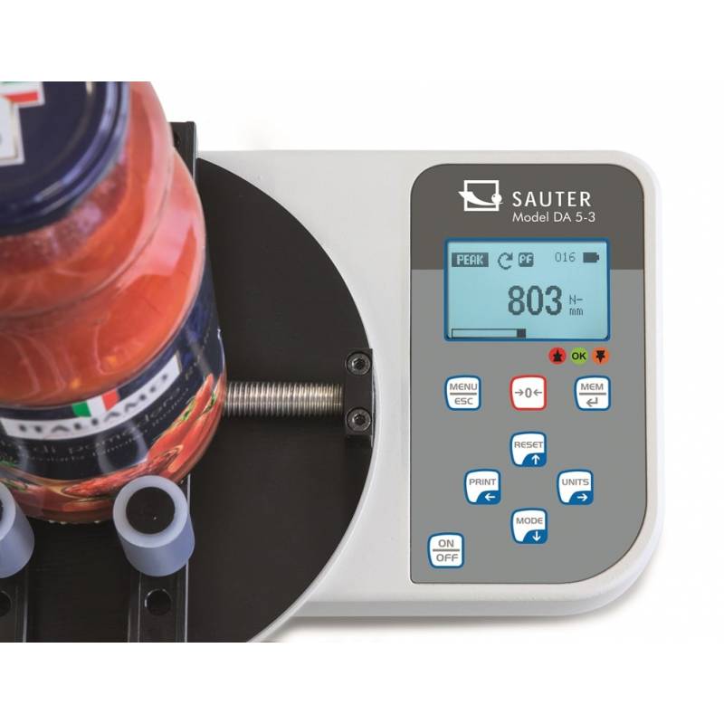DA è un misuratore di torsione digitale dell’azienda SAUTER ed è ottimizzato per la prova della coppia di bottiglie e altri contenitori muniti di tappo a vite.
