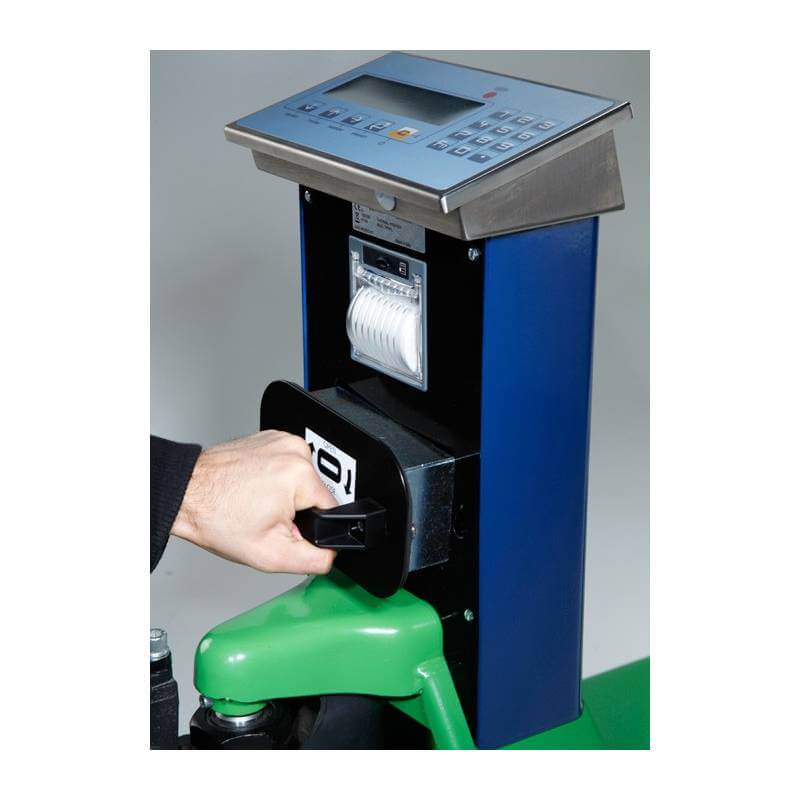 Transpallet Pesatore TPW-K LOGISTIC con Stampa Scontrino, con stampante di serie e in opzione versione Omologato per uso in rapporto con terzi. La sua precisione è dello 0,05% rispetto alla portata massima. Il prodotto è made in Italy.