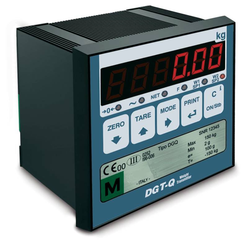 Trasmettitore di peso con tastiera impermeabile semplificata a 5 tasti. Display a LED rossi ad alta efficienza ed involucro da pannello in Abs a norme DIN per montaggio a pannello. Trasmettitore collegabile fino a 8 celle di carico analogiche con resistenza di ingresso 350Ohm. Gestione di un sistema di pesatura a 4 celle con equalizzazione digitale o gestione di 4 sistemi di pesatura indipendenti. Alimentazione da 12Vdc a 24Vdc.