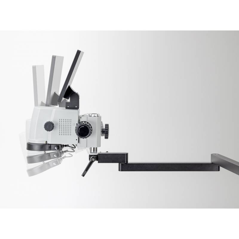 Il microscopio si distingue per la sua flessibilità operativa: il supporto universale con braccio articolato permette di posizionarlo con precisione, mentre il morsetto integrato consente di fissarlo saldamente al piano di lavoro. Inoltre, la possibilità di inclinazione laterale agevola l’analisi di campioni di varie dimensioni e forme.