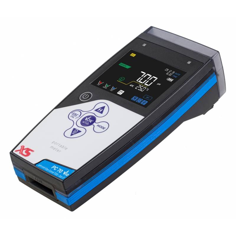 XS PC 70 Vio misuratore multiparametro professionale portatile per misura di pH, mV, ORP Redox, Conducibilità, TDS, Salinità con visualizzazione della temperatura. Funzioni GLP: Data ed ora, visualizzazione dei dati di taratura ed impostazione scadenza di calibrazione. Data Logger manuale ed automatico con possibilità di scarico dati a PC tramite micro USB. Software Data-Link incluso.