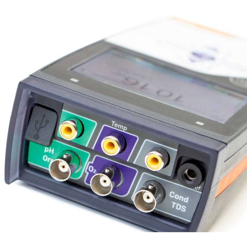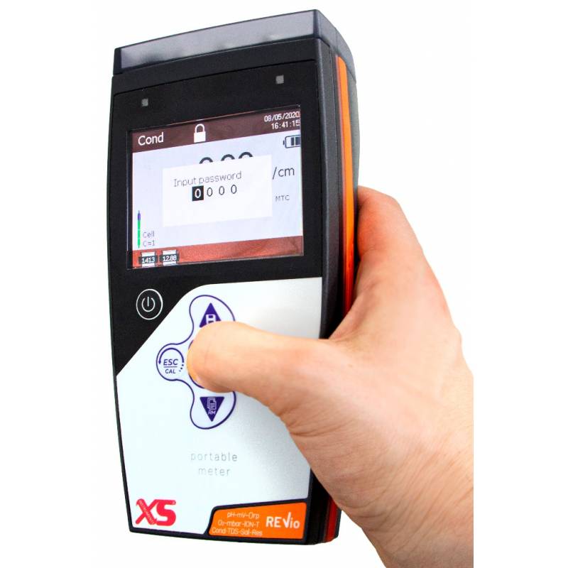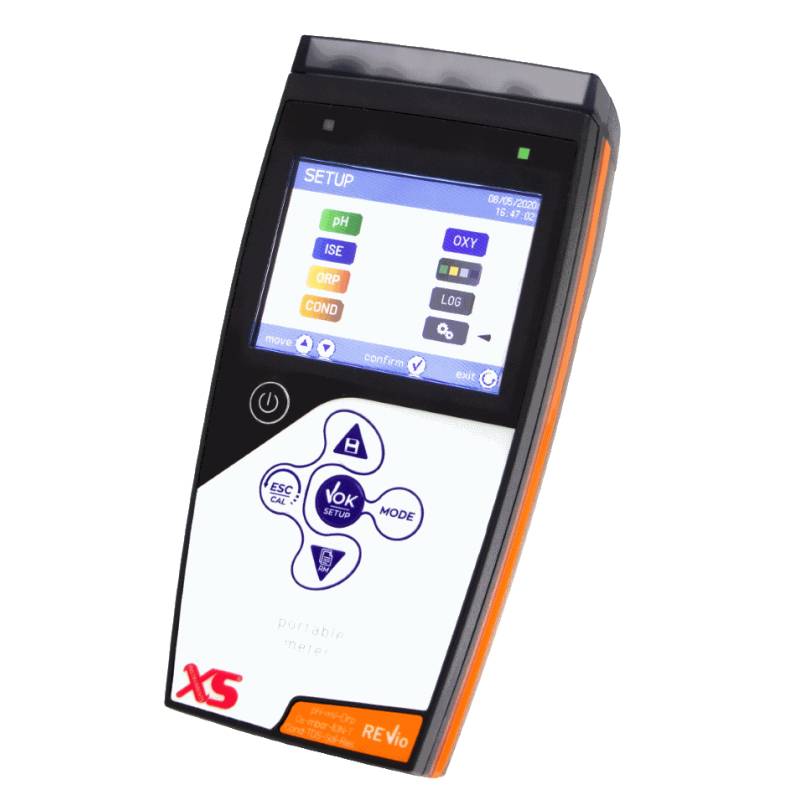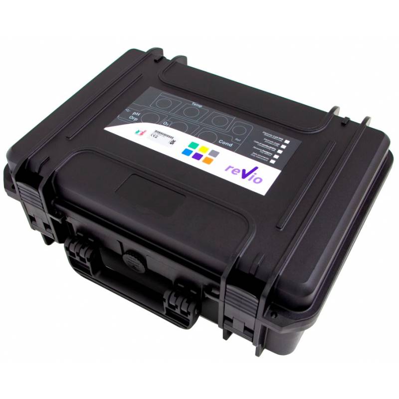 Multiparametro portatile REVio per misure di : Temperatura/ pH / CONDUCIBILITA' / ORP / ISE / OSSIGENO DISCIOLTO ( DO). Resistente agli urti e con adattatore di pressione, si trasforma in un vero e proprio laboratorio mobile, completo di tutti gli accessori necessari alle misure in campo. Completo di soluzioni tampone di pH, Cond e Oxy, cavo USB, alimentatore, batterie e report di collaudo.